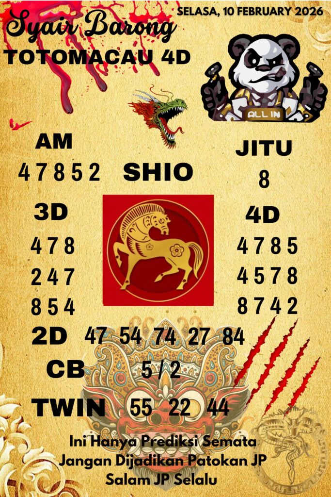 Prediksi DENSUSTOTO menyediakan Syair Togel Toto Macau resmi yang dapat anda saksikan dalam situs judi togel online ini. Setiap pemain judi togel online yang tidak memandang dan mengenal syair togel Toto Macau pastilah kurang mujur buat mendapati angka keluaran togel terjitu. Lantaran itu sekarang situs judi togel online DENSUS TOTO sekarang akan memberikan anda bocoran bagaimana caranya mendapati nomor keluaran prediksi Toto Macau dari syair togel sgp terjitu. Sekarang anda cuma perlu dan mengenal code syair Toto Macau ini merupakan prediksi Toto Macau yang dituang terdapat sifat code syair. Maka serius tidak bertanya-tanya jikalau sejumlah penggemar togel begitu menyintai prediksi syair togel ini. Buat prediksi syair Toto Macau dapat dipakai buat bahan ketidaksamaan mencari angka jitu yang bisa keluar pada hari ini. Karenanya berhati-hatilah selalu pada setiap terdapat dipicu di situ dapat anda angka bermain 2D, 3D dan 4D.