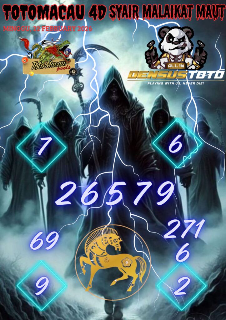 Prediksi DENSUSTOTO menyediakan Syair Togel Toto Macau resmi yang dapat anda saksikan dalam situs judi togel online ini. Setiap pemain judi togel online yang tidak memandang dan mengenal syair togel Toto Macau pastilah kurang mujur buat mendapati angka keluaran togel terjitu. Lantaran itu sekarang situs judi togel online DENSUS TOTO sekarang akan memberikan anda bocoran bagaimana caranya mendapati nomor keluaran prediksi Toto Macau dari syair togel sgp terjitu. Sekarang anda cuma perlu dan mengenal code syair Toto Macau ini merupakan prediksi Toto Macau yang dituang terdapat sifat code syair. Maka serius tidak bertanya-tanya jikalau sejumlah penggemar togel begitu menyintai prediksi syair togel ini. Buat prediksi syair Toto Macau dapat dipakai buat bahan ketidaksamaan mencari angka jitu yang bisa keluar pada hari ini. Karenanya berhati-hatilah selalu pada setiap terdapat dipicu di situ dapat anda angka bermain 2D, 3D dan 4D.