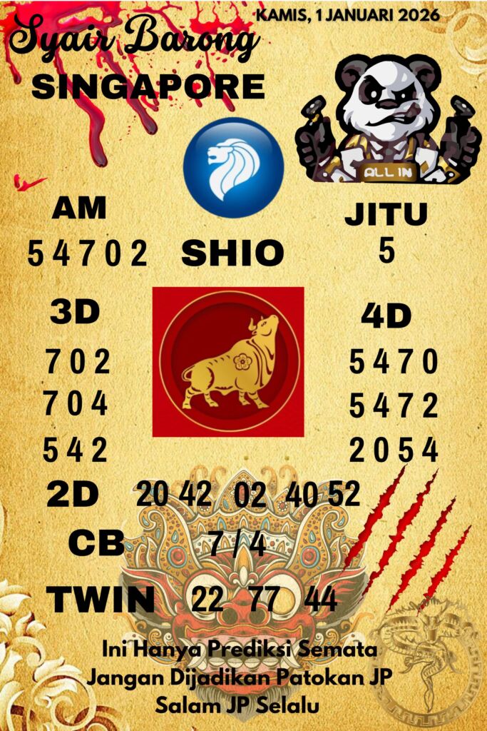 Prediksi DENSUSTOTO menyediakan Syair Togel Singapore resmi yang dapat anda saksikan dalam situs judi togel online ini. Setiap pemain judi togel online yang tidak memandang dan mengenal syair togel singapore pastilah kurang mujur buat mendapati angka keluaran togel terjitu. Lantaran itu sekarang situs judi togel online DENSUS TOTO sekarang akan memberikan anda bocoran bagaimana caranya mendapati nomor keluaran prediksi singapore dari syair togel sgp terjitu. Sekarang anda cuma perlu dan mengenal code syair singapore ini merupakan prediksi singapore yang dituang terdapat sifat code syair. Maka serius tidak bertanya-tanya jikalau sejumlah penggemar togel begitu menyintai prediksi syair togel ini. Buat prediksi syair singapore dapat dipakai buat bahan ketidaksamaan mencari angka jitu yang bisa keluar pada hari ini. Karenanya berhati-hatilah selalu pada setiap terdapat dipicu di situ dapat anda angka bermain 2D, 3D dan 4D