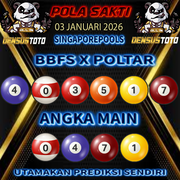 Prediksi DENSUSTOTO menyediakan Syair Togel Singapore resmi yang dapat anda saksikan dalam situs judi togel online ini. Setiap pemain judi togel online yang tidak memandang dan mengenal syair togel singapore pastilah kurang mujur buat mendapati angka keluaran togel terjitu. Lantaran itu sekarang situs judi togel online DENSUS TOTO sekarang akan memberikan anda bocoran bagaimana caranya mendapati nomor keluaran prediksi singapore dari syair togel sgp terjitu. Sekarang anda cuma perlu dan mengenal code syair singapore ini merupakan prediksi singapore yang dituang terdapat sifat code syair. Maka serius tidak bertanya-tanya jikalau sejumlah penggemar togel begitu menyintai prediksi syair togel ini. Buat prediksi syair singapore dapat dipakai buat bahan ketidaksamaan mencari angka jitu yang bisa keluar pada hari ini. Karenanya berhati-hatilah selalu pada setiap terdapat dipicu di situ dapat anda angka bermain 2D, 3D dan 4D