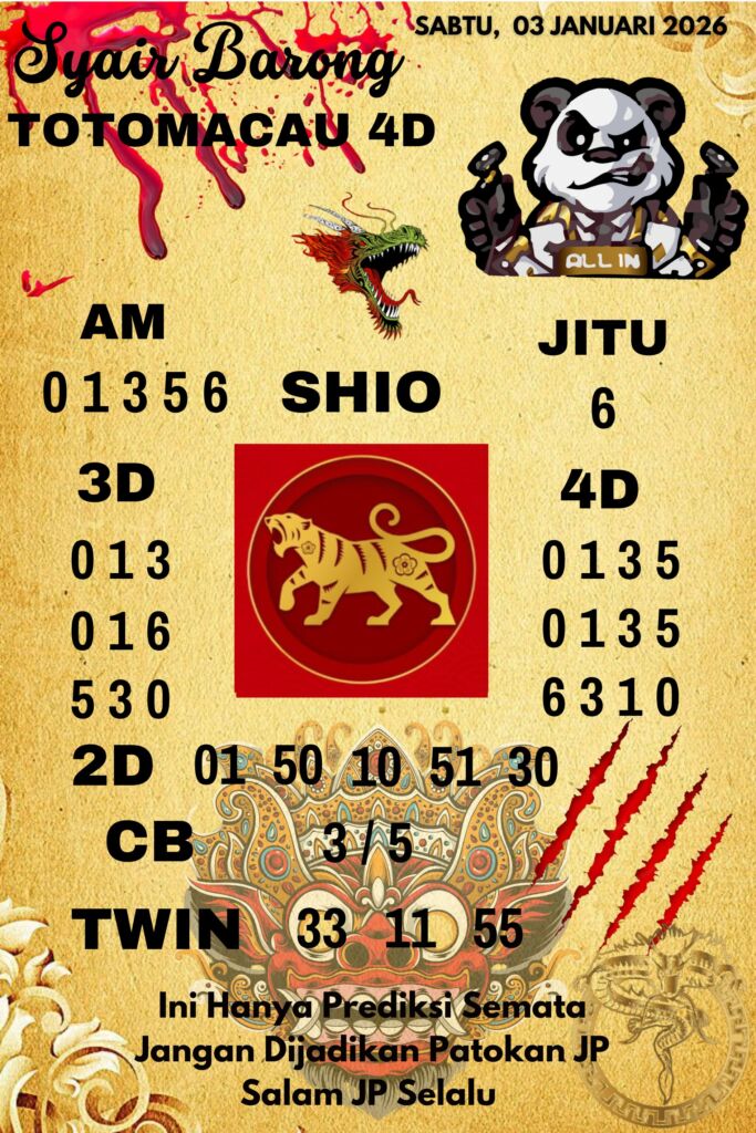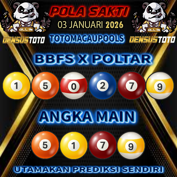 Prediksi DENSUSTOTO menyediakan Syair Togel Toto Macau resmi yang dapat anda saksikan dalam situs judi togel online ini. Setiap pemain judi togel online yang tidak memandang dan mengenal syair togel Toto Macau pastilah kurang mujur buat mendapati angka keluaran togel terjitu. Lantaran itu sekarang situs judi togel online DENSUS TOTO sekarang akan memberikan anda bocoran bagaimana caranya mendapati nomor keluaran prediksi Toto Macau dari syair togel sgp terjitu. Sekarang anda cuma perlu dan mengenal code syair Toto Macau ini merupakan prediksi Toto Macau yang dituang terdapat sifat code syair. Maka serius tidak bertanya-tanya jikalau sejumlah penggemar togel begitu menyintai prediksi syair togel ini. Buat prediksi syair Toto Macau dapat dipakai buat bahan ketidaksamaan mencari angka jitu yang bisa keluar pada hari ini. Karenanya berhati-hatilah selalu pada setiap terdapat dipicu di situ dapat anda angka bermain 2D, 3D dan 4D.
